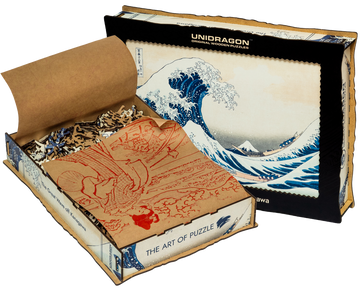 Experience the revered masterpiece from the Land of the Rising Sun that stirred the hearts of impressionists and artists of many genres. The modern Unitouch printing technology faithfully captures the style, finesse, and texture of the original painting, bringing you closer to Hokusai's world. The 18 thematic mini-puzzles provide a window into the life and creativity of the artist. This puzzle comes in premium gift packaging, featuring a lacquered wooden box and craft paper adorned with Hokusai's drafts and sketches.