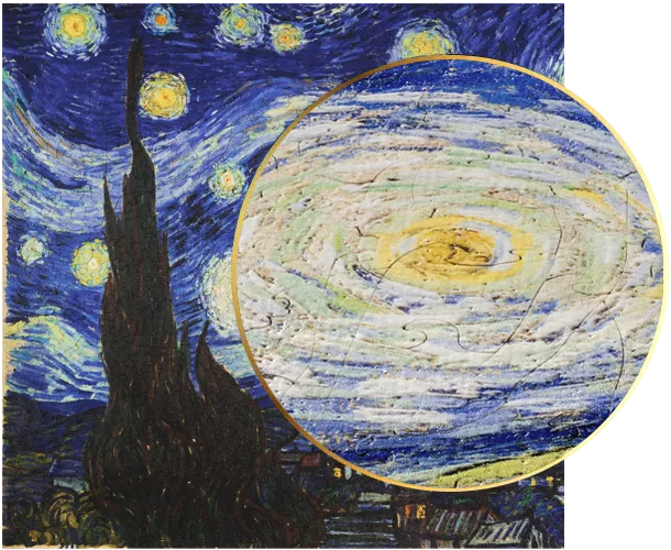 The unique layer-by-layer printing technology and lacquer coating technique allowed us to recreate the painter's brushstroke and the authentic texture of the original paintings. Puzzles have a three-dimensional surface imitating the artist's technique.