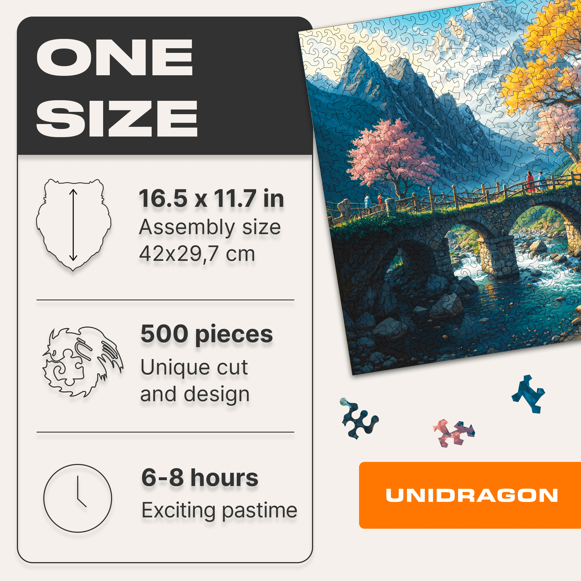 One Size - 43×29 cm (16.9×11.7 in) - 500 pcs - high complexity, assembly time 6-8 hours.