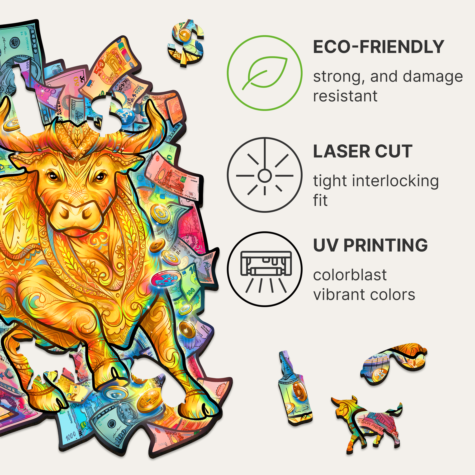Wooden Jigsaw Puzzle Prosperous Bull